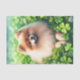 Cute decoupage tissue paper featuring an adorable orange Pomeranian dog laying a field of clover with a few shamrocks.  A cute St. Patrick's Day gift for Pomeranian owners and pom lovers.