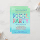 This colourful and bright birthday invitation is ideal to celebrate a pool birthday party during the spring and summer seasons. It features a big “Pool Party” Sign made with watercolor illustrated letters and two life saver floats. This breeze design is ideal for young kids and teens.