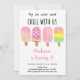 This adorable invitation features hand painted watercolor popsicles in pastel colours.