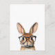 Watercolor Portrait Cute Rabbit With Glasses Postcard