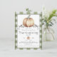 Celebrate the season of gratitude with this charming Green Watercolor Pumpkin Thanksgiving Dinner Invitation, the perfect way to gather loved ones for a festive harvest dinner. Featuring a hand-painted watercolor pumpkin accented with curling pumpkin vines, this design pairs beautifully with a buffalo plaid and gingham background for a cosy, rustic design. Personalised with your family name and details in clean modern typography, this invitation sets the tone for a warm and welcoming Thanksgiving dinner celebration.