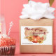 Watercolor pumpkins, sunflowers, and autumn leaves on a rose gold background with sparks. Stickers for small businesses.