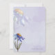 Theme Parties' modern wedding invitations feature purple-blue Gerbera daisies and modern script typography paired with traditional serif lettering. The design is set on matching pale purple-blue watercolor splashes over a pastel lavender background. #Wedding #SpringWedding #ModernWedding