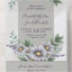 All in one wedding invitation. Watercolor purple and grey daisy-like flowers.