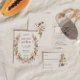Simple and stylish colourful floral wedding guest info details. With a white background and black text layout. And watercolor wildflowers above in purple and yellow and beige. All the info is customisable as website, transportation, and accommodation. Grab it along with other products from this classy handmade retro wedding suite.