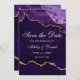 Modern Elegant Watercolor Purple Violet and Gold Marble Agate Geode Save The Date Card