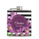 Watercolor Purple Iris Black White Stripes Pattern Hip Flask