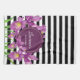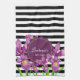 Watercolor Purple Iris Black White Stripes Pattern Tea Towel
