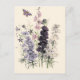 Watercolor Purple, Pink Garden Flowers, Butterfly Postcard