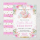 Elegant Watercolor Easter Rabbit and easter eggs design with pink and blue flowers, balloons and gold glitter confetti with a pink stripes background