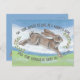 This upbeat, optimistic postcard has a folk saying - "May your joys be as long as a rabbit's ears, and your sorrows as short as its tail." A leaping grey rabbit / bunny / hare and sprigs of leaves and berries are framed by the verse on a green, light sky blue and white watercolor background. Great to send to any animal or rabbit lover, and perfect for a note of hope and encouragement, or to send a get-well wish. Also a cute New Year's greeting! Whimsical, unique, original artwork & design by artist Tuzi Williams.