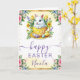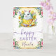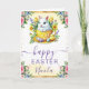 Share warm spring wishes with this adorable Easter card featuring a sweet bunny sitting inside a yellow teacup surrounded by cheerful chicks, colourful Easter eggs, and vibrant watercolor florals. Soft pink roses, butterflies, and gold accents frame the artwork, creating a bright, joyful design perfect for celebrating the season. The pastel palette and playful Easter motifs make this card ideal for sending heartfelt greetings to friends and family. Personalizable text allows you to add a name or message for a one‑of‑a‑kind Easter keepsake.