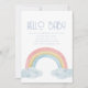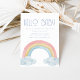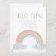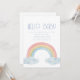 If you love simple boho style, this invitation is right for you. The invitation features an elegant design, with a soft, white background. In the centre, the party details are beautifully scripted in a blue text exuding an air of sophistication. A soft watercolor rainbow sits at the bottom. Invite guests to your baby shower party in style. Background colour and text is editable.