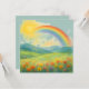 Watercolor Rainbow Landscape with Sun&Wildflowers