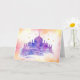 The beautiful watercolor ramadan greeting card with mosque silhouette and stars. .