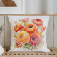 The vibrant colours of this pillow radiate pure happiness, creating a joyful atmosphere in any room. The intricate details of the ranunculus petals are beautifully captured, adding depth and texture to the design. Each flower seems to come alive on the fabric, creating a visually captivating display.