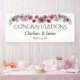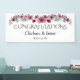 Add this Hanging Banner to your Wedding Reception Accessories. Designed in bright shades of Cranberry Red, with dark floral branches on a white background, the text includes: CONGRATULATIONS, and the Bride and Groom's First Names. To personalise, simply replace the sample Bride and Groom's Names using our easy template.