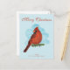 Watercolor Red Cardigan Cute Bird Merry Christmas Holiday Postcard
