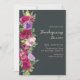 Thanksgiving dinner invitation with a rustic and elegant design. The background is dark grey , decorated with watercolor-style red autumn flowers, dried leaves, and warm colours florals. The text invites guests to a Thanksgiving Dinner with event details below. The overall mood is cosy, farmhouse-inspired, and perfect for fall gatherings. the back of this card is a brown plaid pattern.