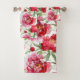 Elegant floral pattern featuring vibrant red and pink peonies with lush green leaves on a white background. Add elegance and beauty to your creations today!