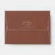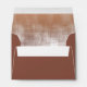 This modern envelope features an interior abstract, watercolor design resembling reflections on water with a gradient colour palette from pale peach to dark terra cotta. The exterior is an optional darker terra cotta. Personalise with the bride and groom's names and address on the back flap using the provided template. Search ID774 to see complete matching set and additional colour options.