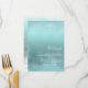 This modern wedding reception menu is slightly informal with warm, personal feel and features an abstract, watercolor design resembling reflections on water. This example has a gradient color palette from soft teal to deep sea green. Personalize with the bride and groom's initials, wedding date and details using the provided template. Search ID774 to see complete matching set and additional color options.