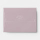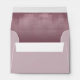 This modern envelope features an interior abstract, watercolor design resembling reflections on water with a gradient colour palette from soft rose to dark mauve. The exterior is an optional soft mauve. Personalise with the bride and groom's names and address on the back flap using the provided template. Search ID774 to see complete matching set and additional colour options.