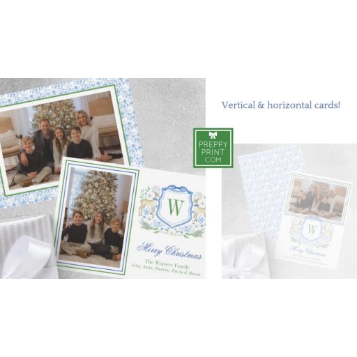 Watercolor Reindeer Monogram Crest Christmas Doormat