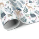 A holiday wrapping paper features original watercolor illustrations of reindeers and forests with customisable names.