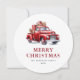 Classic watercolor Merry Christmas card featuring a retro red truck carrying Christmas gifts.