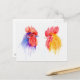 watercolor Rooster Portrait two roosters Postcard