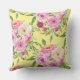 Lush watercolor roses in shades of pink, red, peach and cream bloom on a lemon yellow background on this feminine throw pillow.