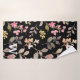 watercolor rustic botanical leaves pattern monogram bath towel set ,elegant black and vintage green leaves with pink flowers bath towel set .