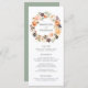 Elegant custom wedding menu card featuring a your names encircled by a wreath of watercolor flowers, succulents, and leaves in shades of blush pink, peach, orange, cream, green & brown. Personalise the custom wedding menus by adding your wedding menu details below. The menu reverses to a solid green background with space for text and photos. Designed to coordinate with our Watercolor Rustic Fall Floral wedding collection.