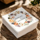 Elegant, autumn wedding napkins featuring a wreath of watercolor flowers, succulents, and leaves in shades of blush pink, peach, orange, cream, brown, and green. Personalise the rustic wedding napkins by adding your names. Designed to coordinate with our Watercolor Rustic Fall Floral wedding collection.