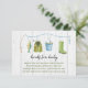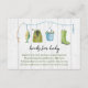 Request books instead of cards with this Little Fisherman Book for Baby card. Designed in rustic blue watercolor with fishing rod, vest, boots, and lures, it’s perfect for an outdoorsy baby shower boy theme, creating a lasting keepsake library for your little angler.