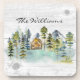 Introducing our Watercolor Rustic Foggy Forest Mountain Cabin beverage coaster. featuring a watercolor cabin nestled in a foggy green pine forest. Great for rental vacation cabin, lodge, lake house, and cottage.
