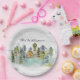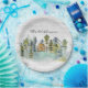 Watercolor Rustic Foggy Forest Mountain Cabin Paper Plate