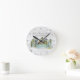 Watercolor Rustic Foggy Forest Mountain Cabin Round Clock
