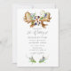 Trendy wild woodland wedding invitation featuring hand painted watercolor bouquets with forest berries - blueberry, blackberries and sprigs, pine cones, ferns, feathers and moose horns.