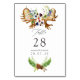 Trendy wild woodland wedding table card numbers featuring hand painted watercolor bouquets with forest berries - blueberry, blackberries and sprigs, pine cones, ferns and moose horns.
