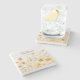 The coasters are gorgeous, a quality feel and heavy weight. They look like a precious archeological find. A rustic stone juxtaposed with a modern floral black and white print. I like the way the print goes slightly imperfect on the cut stone edges giving them a kind-of natural beauty.