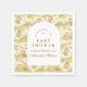 A sweet storybook-style safari design featuring gentle watercolor baby animals including lions, giraffes, and elephants surrounded by soft jungle greenery and delicate botanical details. The warm neutral palette of cream, honey gold, and soft olive creates a timeless nature-inspired aesthetic, while the elegant arched layout leaves beautiful space for personalized event details.