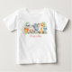 Watercolor Safari Baby Animals Baby Shirt. Baby Animals include Elephant, Monkey, Giraffe, Rhino, Zebra and Lion on fern leaves. Watercolor Botanical Greenery. Pink Text. Add Name.