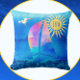 Watercolor Sailboat Blue Sky Sparkling Water Cushion