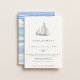 Beautiful watercolor sailboat and heart rope knot accent with blue watercolor wash backing, nautical themed wedding invitation.