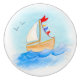 Brighten up kids or nursery draws or doors with these stylised watercolor wooden sailing boat with blue and red flags art pull knobs. Watercolor art and design by Sarah Trett.