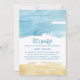 This watercolor sand and sea "let's party" invitation card is perfect for a beach theme bachelorette or engagement party. The abstract design features yellow and blue watercolor texture which is arranged to bring out seaside ocean vibes.