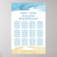 This watercolor sand and sea seating chart poster is perfect for a beach wedding. The abstract design features yellow and blue watercolor texture which is arranged to bring out seaside ocean vibes. This wedding poster includes enough room for up to 12 tables (120 guests). In addition to the placement of each guest, personalise this sign with the names of the bride and groom and the wedding date. This seating chart can be used for a wedding reception or any special event.