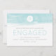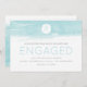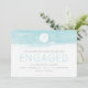 This modern engagement announcement features a soft aqua blue watercolor background and sand dollar graphic. Perfect for the couple planning a destination beach wedding.